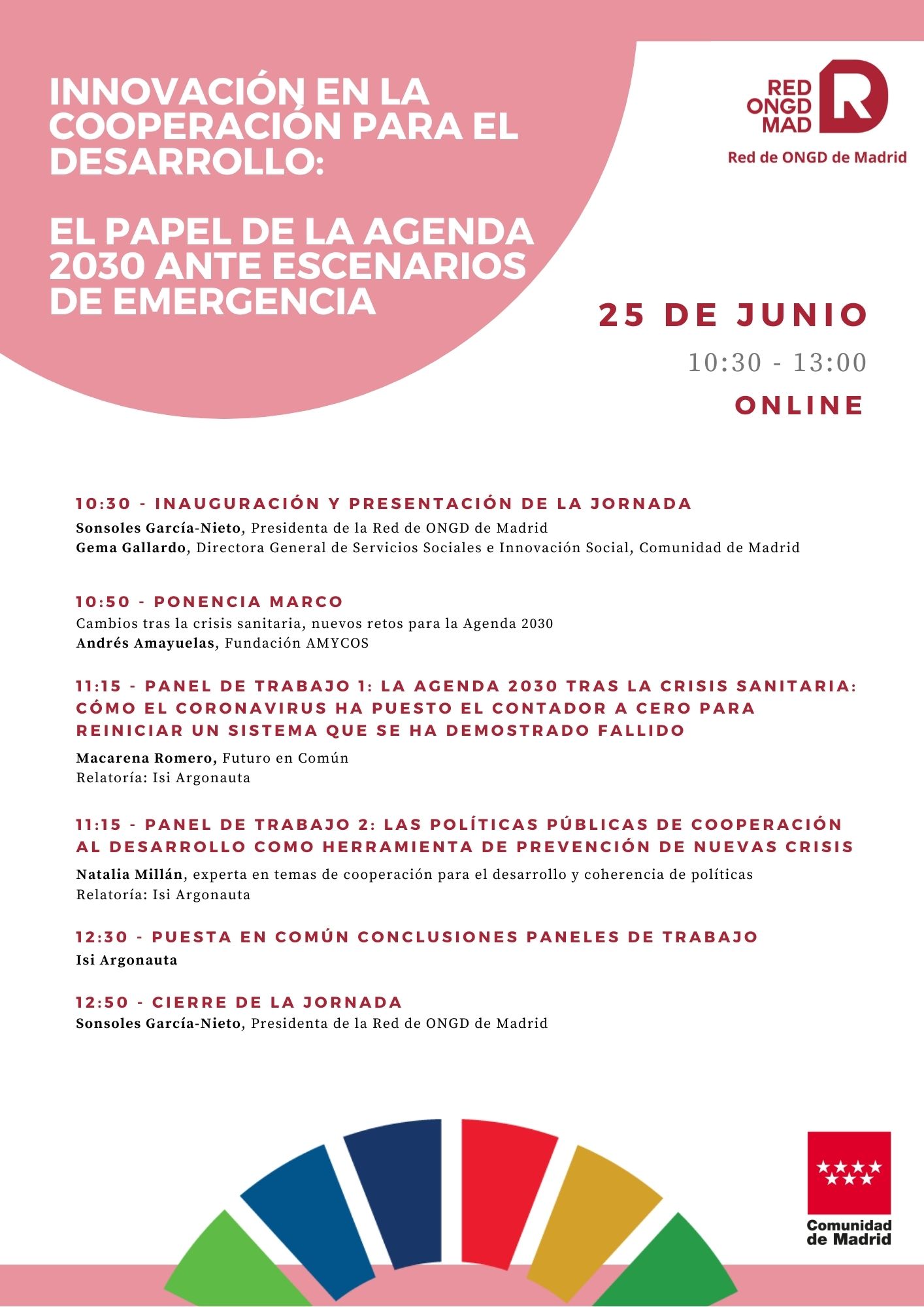 El objetivo de esta Jornada, que se desarrollará online, será analizar la relación entre generación de conocimiento y progreso a través de la innovación y cómo ello se traduce en políticas públicas que generan impacto. El seminario pretende crear un espacio de encuentro donde revisar las estrategias madrileñas de cooperación internacional para el desarrollo e identificar los instrumentos más adecuados para promover la innovación, con el objetivo de sentar las bases de una política innovadora que contribuya al logro de las metas fijadas en la Agenda 2030.